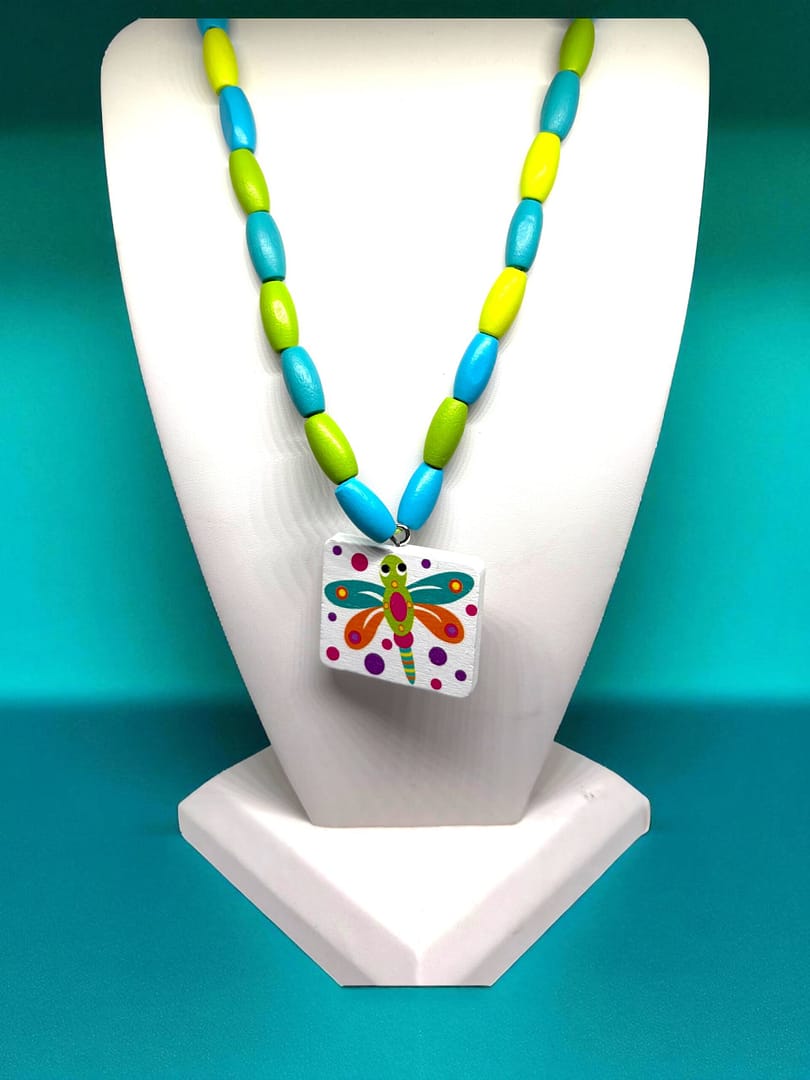 Necklace with pendantApproximately 18″–no claspWooden Beads